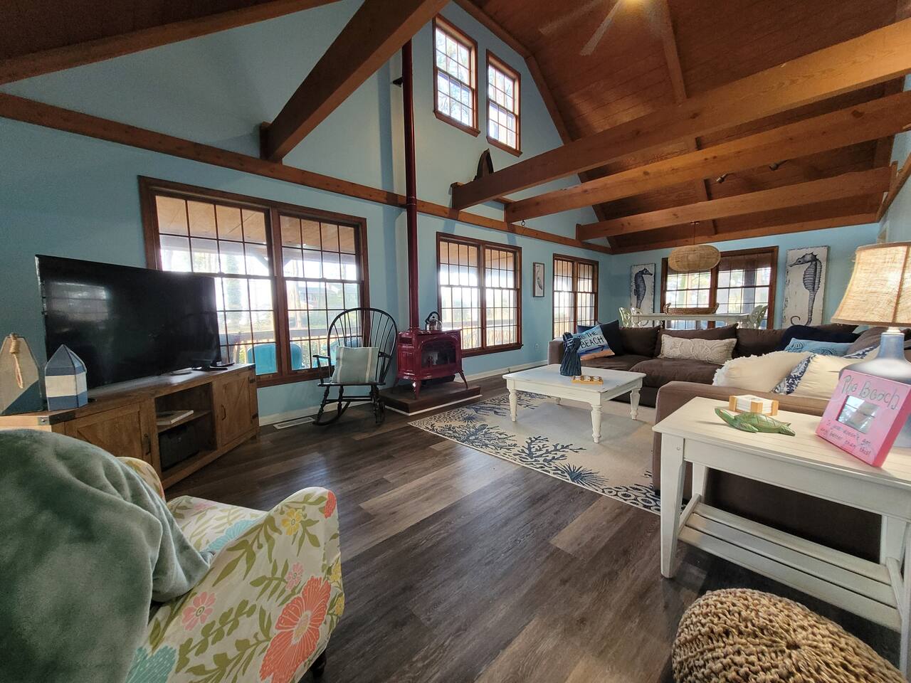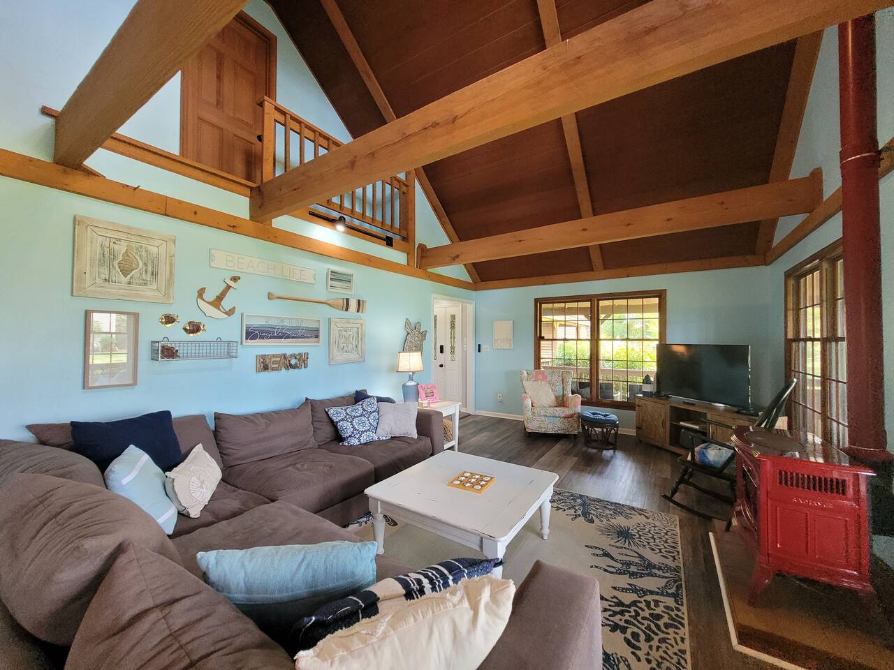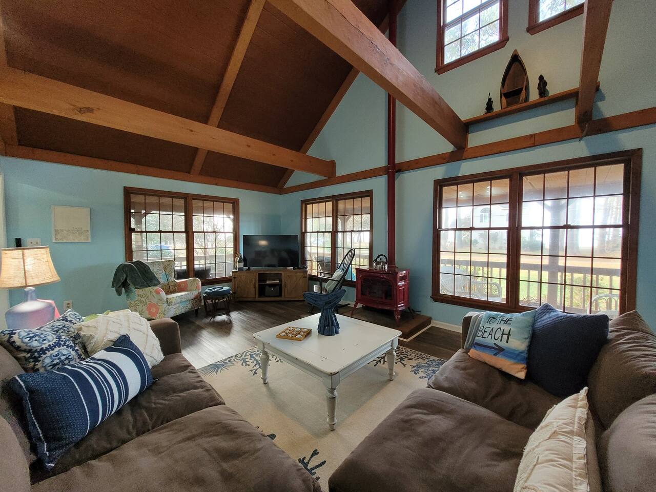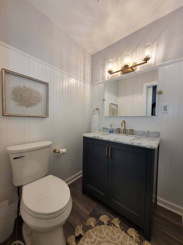 The kitchen is stocked with dishes, cookware, serving ware, Keurig, old school coffee pot, kitchen aid mixer, fondue maker, toaster oven, crock pot and microwave. Bikes (2), kayaks (2), coolers, and a spare refrigerator in the garage for you to use. Beach toys, and chairs. Pack-and-play, bassinet, high chairs (2), and toys are provided. Bath towels and linens are provided. Please bring your own beach towels.