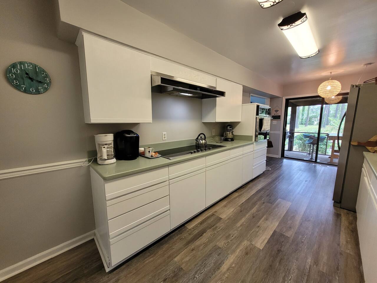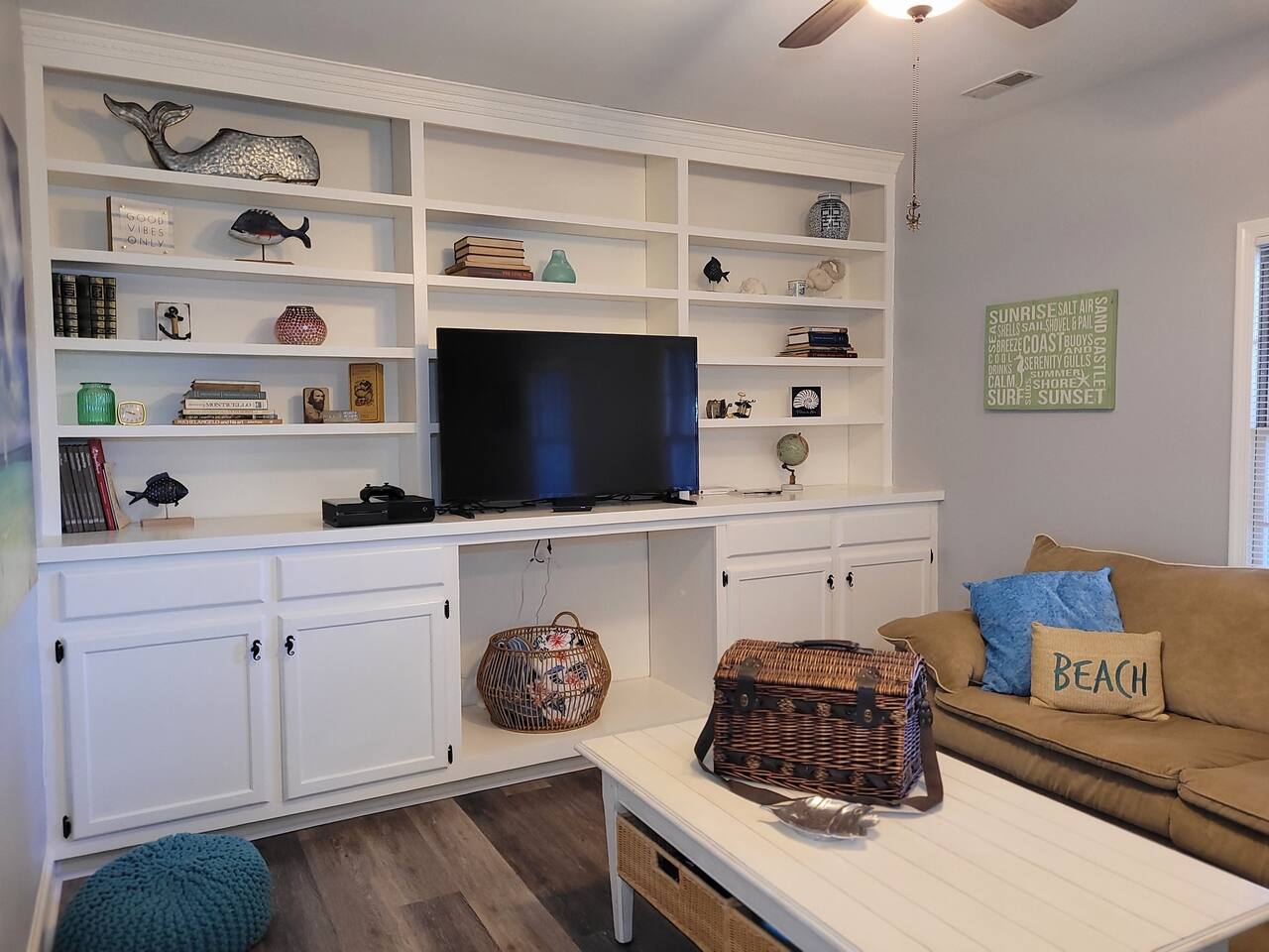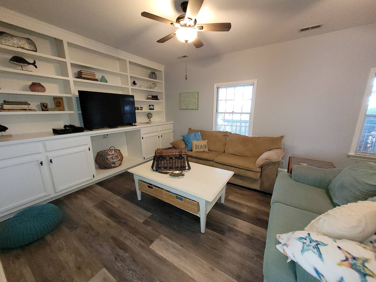 The kitchen is stocked with dishes, cookware, serving ware, Keurig, old school coffee pot, kitchen aid mixer, fondue maker, toaster oven, crock pot and microwave. Bikes (2), kayaks (2), coolers, and a spare refrigerator in the garage for you to use. Beach toys, and chairs. Pack-and-play, bassinet, high chairs (2), and toys are provided. Bath towels and linens are provided. Please bring your own beach towels.