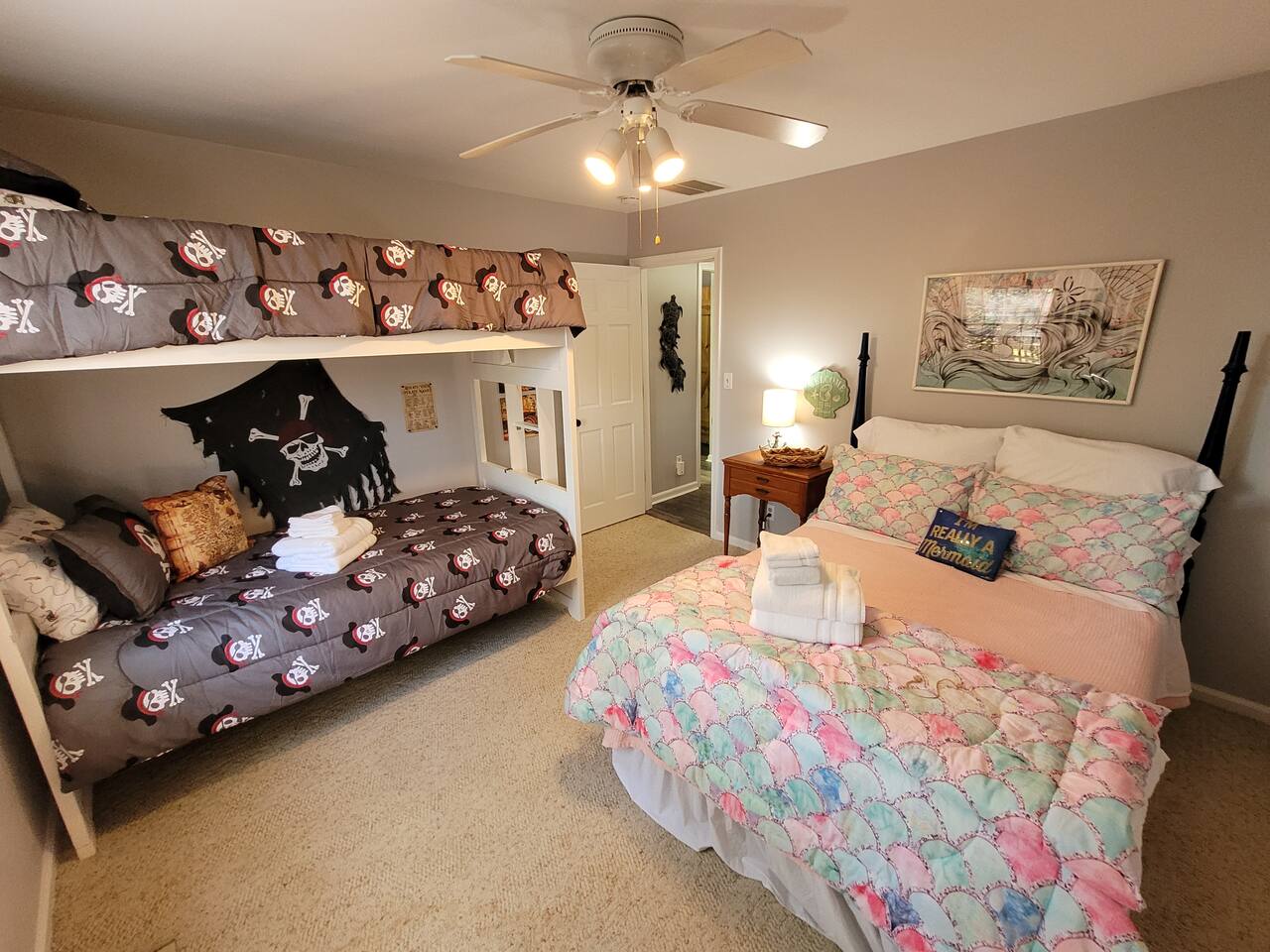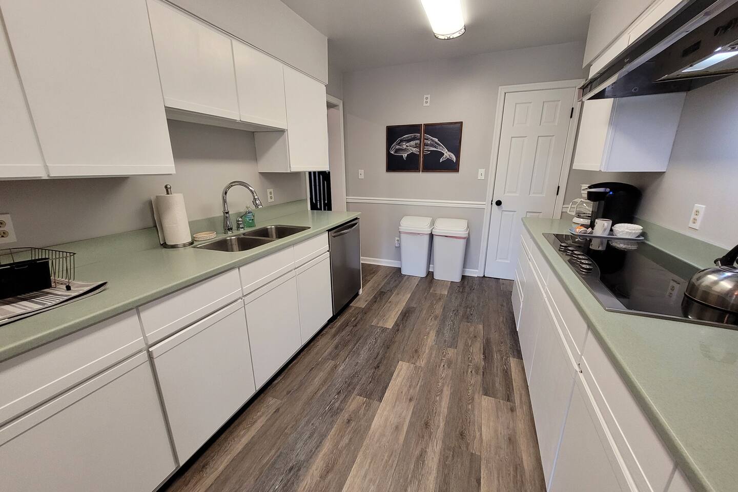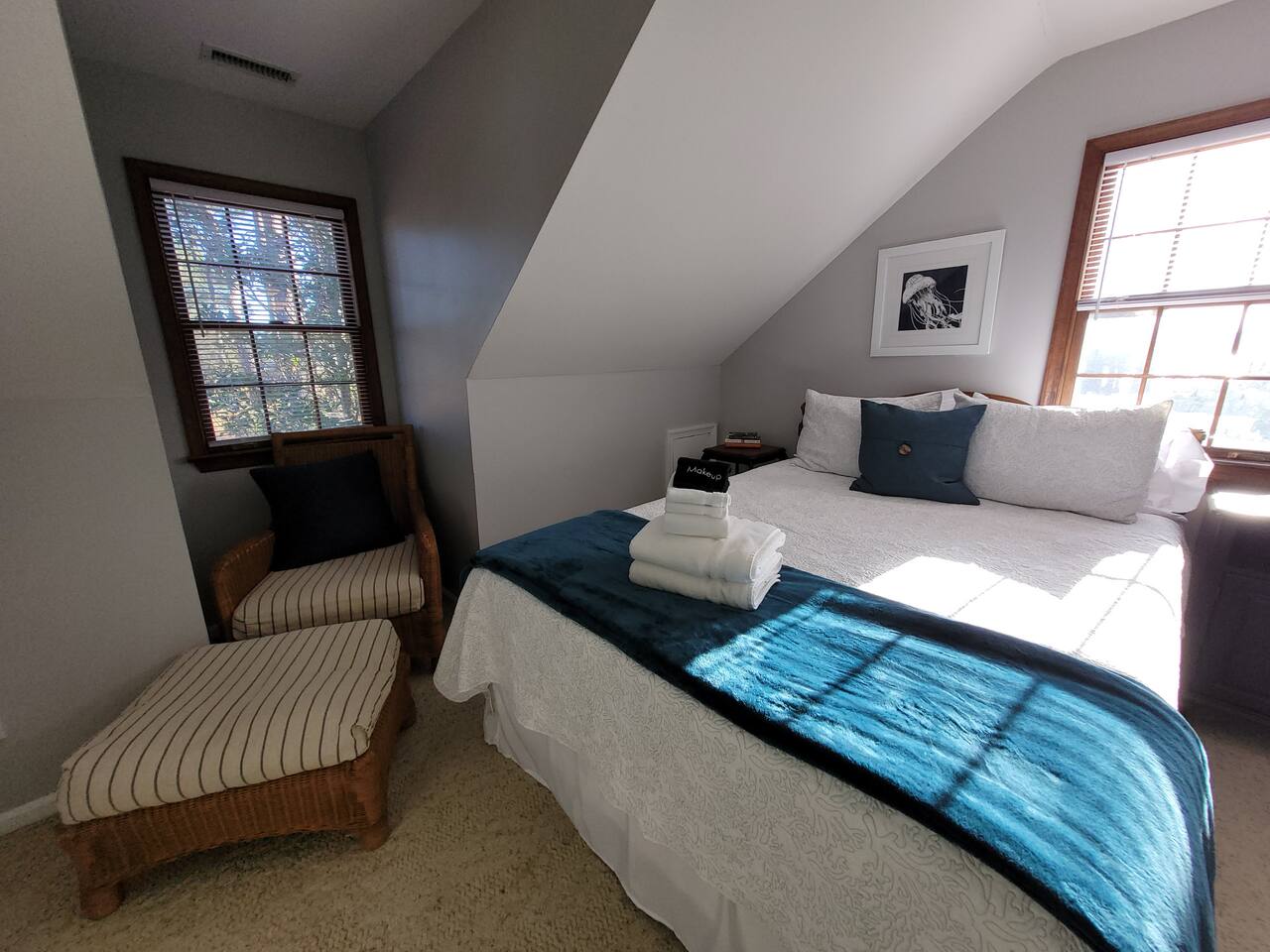 The driveway allows for off-street parking for about six vehicles. Walk or ride bikes to the beach; it's just two blocks away. Both kayaks (2 -3 person and 1 person) have wheels to easily roll down to the beach.