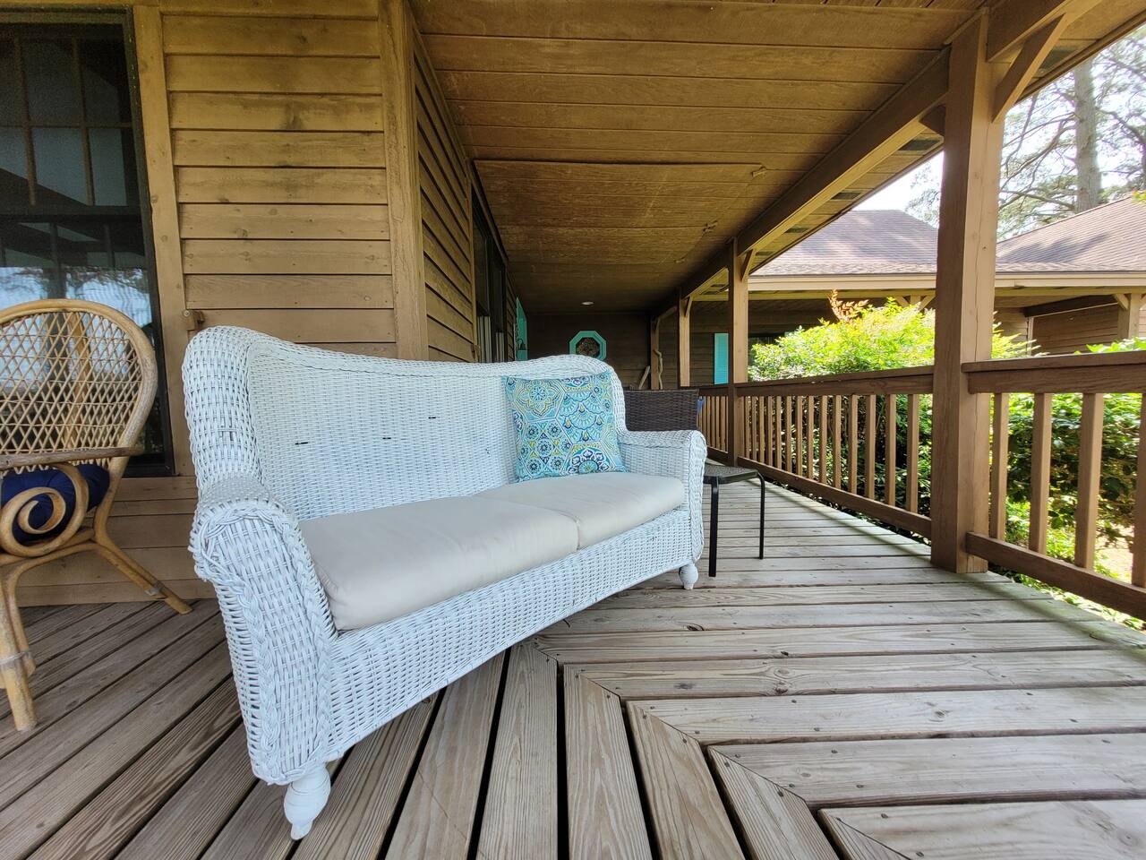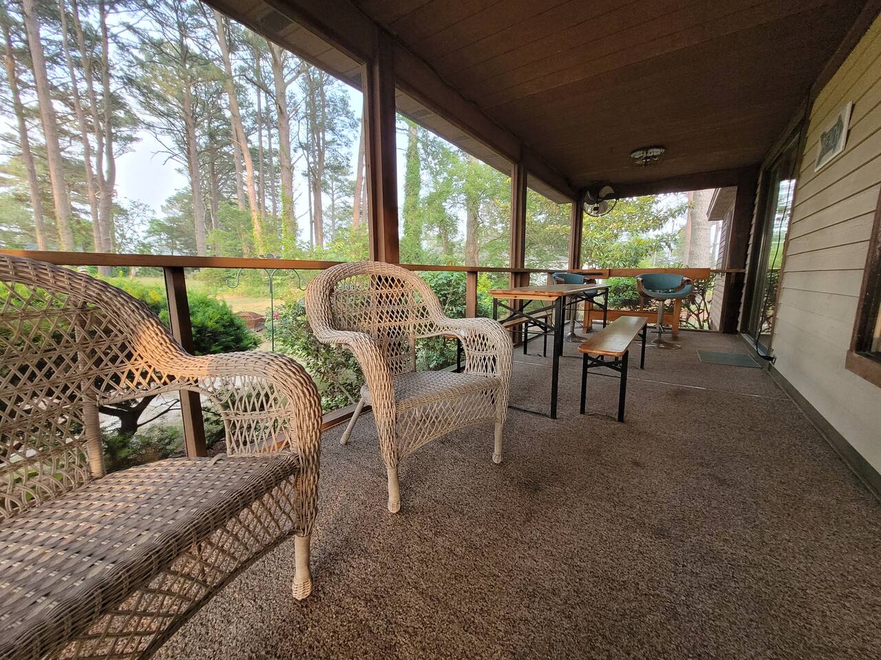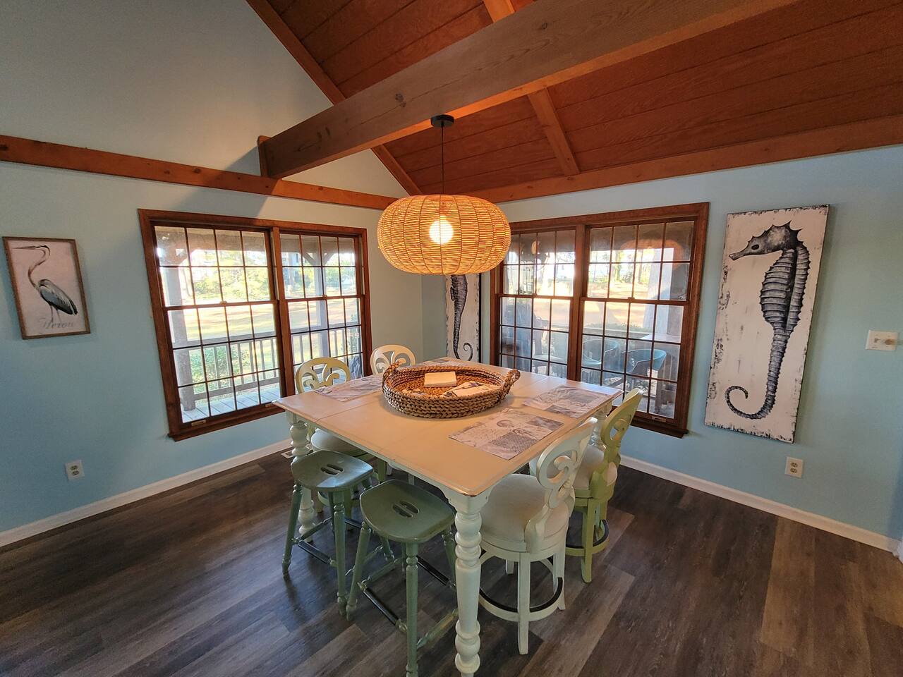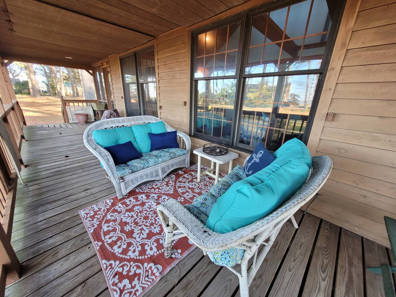 This spacious home has been updated and decorated with your vacation in mind. With two large family rooms, there is plenty of space for all to relax and enjoy. The huge wrap-round and screened porches offer the perfect setting to gather and enjoy the fresh air. Three of the five bedrooms are located on the first floor; two with private baths. The kitchen opens to the screened porch and makes the perfect outdoor dining setup. Enjoy cool nights by the firepit.